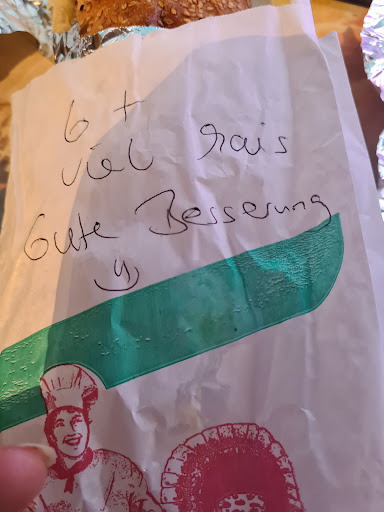 Read moreAbsolute Frechheit was uns hier geboten worden ist! Wir haben zwei Baguettes mit Sucuk, Feta, Oliven & Zwiebeln bestellt (eigtl. im Kern ein Greca Baguette) und wollten vor Ort um ca 21.05 Uhr essen. Wir wussten gar nicht, dass Baguettes in Lüdenscheid mittlerweile 8 EUR kosten !??!?!?!?! und haben zusammen 16 EUR bezahlt. Wir waren hier schon völlig verwirrt und wurden zudem noch quasi aus dem Laden gescheucht, mit einer derart unsympathischen und unhöflichen Art & Weise. Offiziell schließt man dort um 21:30 Uhr und um 21:10 Uhr durften wir uns nicht einmal für unsere Baguettes anscheinend aus Milan oder Paris nicht mehr hinsetzen. Die dünnsten zwei Scheiben Sucuk, KEINE Oliven und KEINE Zwiebeln rundeten hier das Gesamtbild ab. DANKE & NIE WIEDER!!! Diese 4 EUR Verarsche werden euch von Herzen gegönnt noch richtig teuer zu stehen kommen, weil ich werde nie wieder einen Fuß dort reinsetzen und JEDEM in meinem Umfeld dieses unvergleichliche Gastronomie Erlebnis...