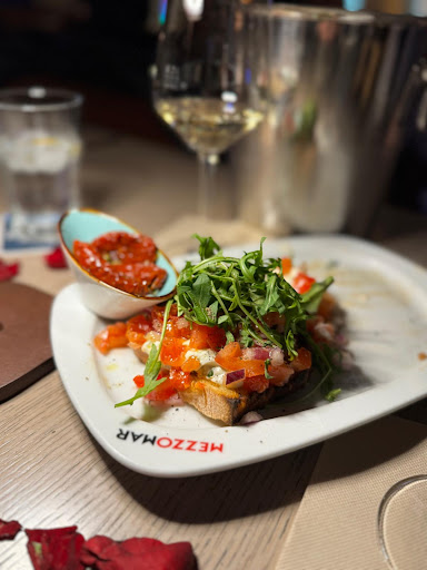 "Jedem Anfang wohnt ein Zauber inne" ..( Hermann Hesse ). Der Zauber des Mezzomar war jedoch schnell verflogen. Am Anfang befand sich auf dem hervorragenden Insalata Italia noch geraspelter Mozzarella. Dazu fein geschnittener Schinken. Am Ende wurde schnöder Leerdammer oder ein ähnlicher gelöcherter Käse nichtitalienischen Ursprungs um den Schinken gerollt. Da das Frühstücksbuffet im Mezzomar kurz zuvor geendet hatte, blieb beim Esser ein ungutes Gefühl zurück, was die Herkunft des Käses betrifft. Der Chef blieb für den Vorhalt taub und tat so als würde er akustisch oder inhaltlich das Vorgetragene nicht orten können. Der Start des Mezzomar in Lüdinghausen war gut. Aber dann. Der Salat Pastore war am Anfang köstlich. Am Ende wurde mit Mais ( der sich nicht auf dem Salat befinden sollte ) die magere Portion verunziert und ruiniert. Was noch auffällt: Die Kellnerinnen lassen nicht selten das Essen ungerührt an der Ausgabe zur Küche stehen, offenbar ebenfalls sich taub stellend, und wischen lieber draußen Tische ab. Das Glöckchen kann immer wieder und wieder und wieder mit seinem Bim-Bam-Bim-Bam-Bim-Bam erklingen und das ganze Lokal mit seinem Klang füllen, ohne dass sich die Beine mit dem Essen in Bewegung setzen, währenddessen der Chef ungerührt Gläser poliert. Beim zweiten Besuch hatten wir uns schon selbst zur Ausgabeklappe begeben um das Essen abzuholen... Der Zauber ist dann schnell dahin, wenn lauwarme Pizza und mit Salat mit Leerdammer statt Mozzarella den Weg an den Tisch dann endlich finden Prognose: Keine Gute.Der Zauber ist einem gewissen Grauen gewichen.... Leerdammer.... oder ein sonstiger Lochkäse ...Oh Gott... . Nie wieder. Bäh....Für wie blöd wird der Gast...