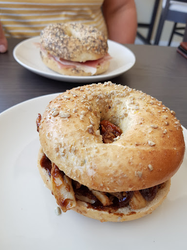 Read more4.5 stars!!! These are authentic - and delicious! ‐ bagels! The chicken bbq that i had on mine was homemade and mega yummy. We bought some bagels to take home, too, since we were traveling and wanted to enjoy them today! The woman working there, the owner i think, was super friendly and helpful! The only thing that kept me from rating a full 5 stars is that there was no lactose free option for the cream cheese, that would be an easy fix... but next time we're in town we will definitely come to this delicious and conveniently located...