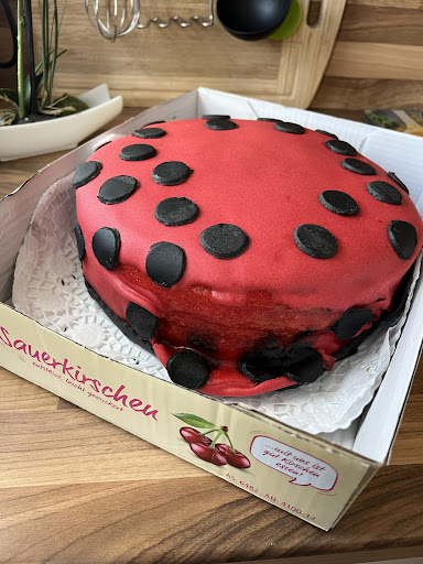 Muss leider ein Stern geben um bewerten zu können, obwohl dieser leider schon zuviel ist.. Zum 6 Geburtstag meiner Tochter haben wir eine nun wirklich an sich einfache Torte in Auftrag gegeben.. Wie man anhand der Bilder unschwer erkennen kann, hätte es meine 6 Jährige besser hinbekommen die schwarzen Punkte auszustanzen.. Da die Großeltern die Torte abgeholt haben, konnte ich sie nicht "reklamieren" bzw wohne dafür auch zu weit weg. Meiner Meinung nach sollte jeder der Torten erstellt Kartons haben um diese zu transportieren, das Auge isst ja bekanntlich mit. Stattdessen ein "Sauerkirsch Karton". Darüber kann ich aber hinwegsehen. Aber bei den kreisen und das runterfließen der Torte bin ich fast umgekippt... Ich musste soviel Sachen dran hängen an die Torte das man wenigstens auf 1-2 Fotos die Katastrophe nicht erkennt. ☹️ Für eine Kindertorte und einem Preis von ca. 60€ kann man etwas mehr Liebe erwarten..... Geschmacklich war sie Ok.