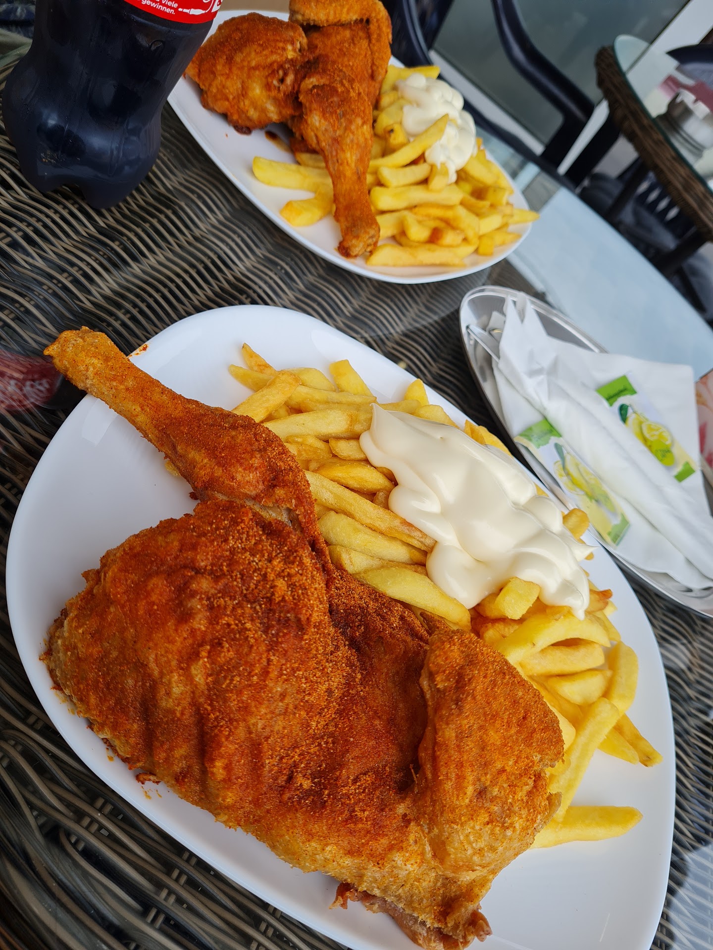 Read morePommes wird 2 mal warm gemacht und das vor den eigenen Augen wahr jetzt nicht so der Hit.. Currywurst schmeckt dort lecker. Das Hähnchen ist Geschmackssache wer es frittiert mag und voll mit Fett kann sich das Hähnchen holen. Der Boden klebt wie sau und sauber sieht es auch nicht aus leider man könnte den "Schuppen" sehr schön und sauber gestalten aber so werde ich persönlich nicht nochmal dort essen gehen.!