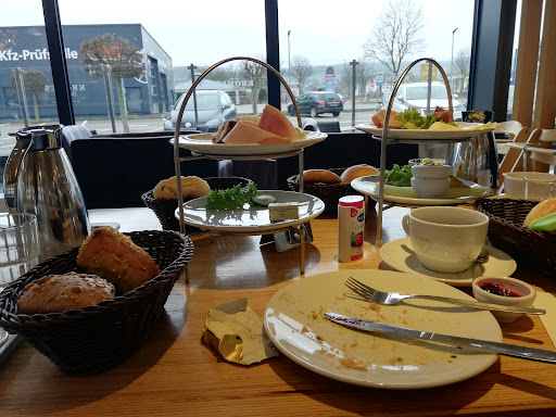 Mal abgesehen davon, dass dort nachmittags um 15 Uhr eine "Auswahl" an Kuchen vorhanden ist, die geradezu lächerlich wirkt, und einem die Tränen in die Augen treiben könnte - große Vitrine und nichts zur Auswahl -, überzeugte das einzig verbliebene Stückchen Mocca-Biskuit auch geschmacklich nicht; abgestanden-ranzig, wie vor Jahren noch gebacken wurde ...