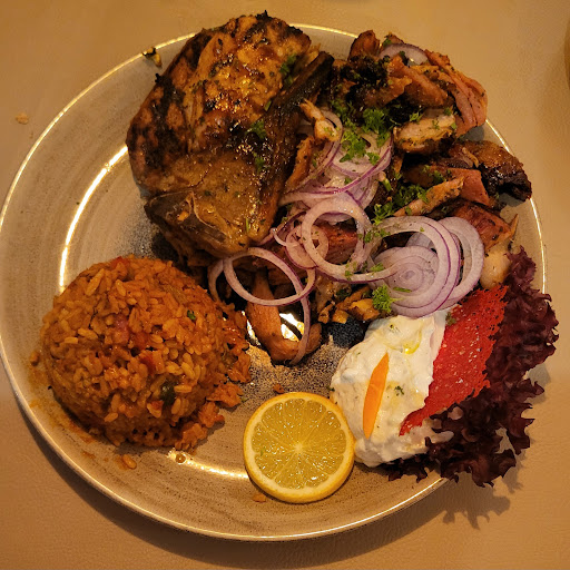 Read moreWenn ich die guten Bewertungen hier lese muss ich entweder sehr großes Pech gehabt haben oder der Koch hatte einen schlechten Tag. Ich habe noch nie schlecht in einem griechischen Lokal gegessen, deswegen ist es so überraschend enttäuschend. Den einen Stern vergebe ich für die gut schmeckende Metaxasoße auf dem Teller meines Tischnachbarn. Mein Essen war leider komplett unterirdisch. Das Knoblauchbrot bestand aus kalten ungerösteten Baguettescheiben, auf die man etwas Knoblauch- und Chilipulver gestreut hat (fehlt auf dem Bild weil verspätete Lieferung). Für vier Euro eine wirkliche Unverschämtheit. Der rote Reis war leider komplett geschmacksneutral. Die Tintenfischringe waren ok aber leider auch nicht mehr. Optisch leider auch sehr grenzwertig. Für mich ein wirklich enttäuschender Besuch, der sich definitiv nicht wiederholen...