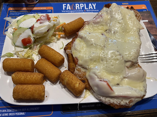 Wir waren heute an einem Sonntag mit dem Rad unterwegs und sind zufällig im FairPlay gelandet und nun ganz verliebt. Das Essen ist gewissenhaft gewählt. So haben wir eine Art Cordon Bleu und ein Schnitzel Jäger Art genießen können, welche einfach nur köstlich und zart waren. Das Essen ist ganz frisch, das Fleisch bewusst (frisch vom Schlachter), die Portionen riesig! Das Ambiente ist ebenso schön und alles ist sehr sauber. Auf der Terrasse konnten wir einen wunderschönen, sonnigen Herbsttag im grünen genießen. Der Wirt und seine Frau sind sehr freundlich, zuvorkommend und kümmern sich wahrscheinlich auch um alles was das Herz sonst so bewegen kann wenn man da ist. Es war ganz toll und wir werden ganz bald wieder...