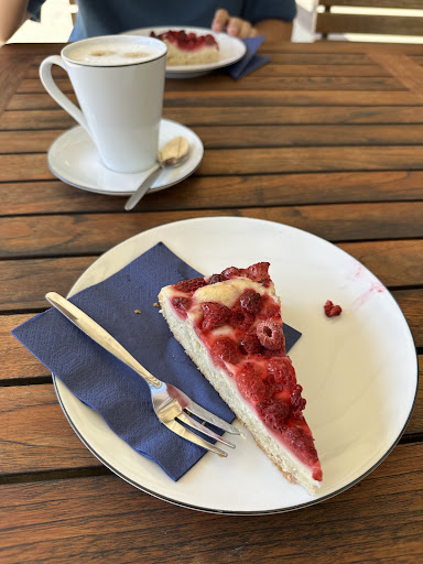 Read moreCafé hat was von einer Wartehalle, ungemütlich und wenig liebevoll eingerichtet. Der Rhabarberkuchen schmeckte nicht nach Rhabarber und war eigentlich nur süß. Der Latte Macchiato war dünn. Das Gesinge und aufgesetzt fröhliche Verhalten der Bedienung war nervig und aufdringlich. Einzig die Preise waren in Ordnung und günstig, spiegelten so aber lediglich den negativen Gesamteindruck wieder. Die Location ist eigentlich gut. Da wäre...