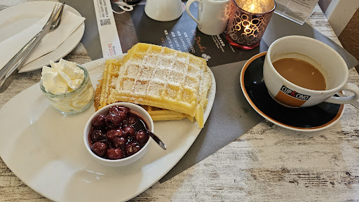 Read moreFrüher war das Café sehr empfehlenswert. Seit der Besitzer gewechselt hat, haben jedoch die Bedienung und das Essen mächtig nachgelassen. Die Kellnerinnen sind extrem unfreundlich und schnell genervt, die Brötchen zum Frühstück waren total trocken, die Brotscheiben waren dünn und hart, das rührei war buttergetränkt und der Kaffee schmeckte, als wäre 2 mal der gleiche Kaffeefilter genutzt worden. Da ich Vegetarierin bin, wollte ich mir ein bestimmtes Frühstück, nur ohne die auf der Karte stehende Scheibe Schinken bestellen. Mir wurde daraufhin gesagt ich müsse dann zwangsläufig das Veggie-Frühstück nehmen, obwohl da Belag bei war den ich nicht essen wollte. Auf die Frage, warum ich denn nicht einfach das ursprüngliche Frühstück ohne die Scheibe Schinken nehmen könnte, wurde mir geantwortet, dass bei dem Frühstück nicht nur Schinken sondern auch andere Wurstsorten wie Salami und Pute bei wären und dass "Schinken" nur der Oberbegriff für die allgemeine Wurst wäre. Ich frage mich warum man dem Gast also Essen serviert, welches er nie bestellt hat. Und vor allem, warum man so unflexibel ist und auch noch unhöflich wird, wenn ein Kunde einfach wünscht, keine Wurst auf seinem Teller zu bekommen. Zusammengefasst ist dieses Café nicht mehr empfehlenswert, denn sowohl das Essen, als auch die Bedienung sind...