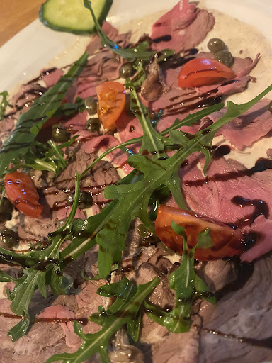 Read moreWeil bei unserem ersten Besuch das Essen sehr lecker war, entschlossen wir uns am Valentinstag ein weiteres mal dort essen zu gehen. Also Telefon in die Hand, Tisch um 20:00 Uhr reserviert. Dort angekommen, begann erst mal die Suche nach einem Parkplatz - eine echte Katastrophe! Im Restaurant pünktlich angekommen war unser Tisch nicht frei – Wartezeit von circa 10 Minuten war okay. Die Bedienung brachte uns recht schnell eine Karte und ein freundlicher Kellner nahm nach kurzer Zeit auch die Getränke/Essen auf. Die Getränke dauerten circa 10 Minuten, was aber okay war für uns, denn das ganze Restaurant war gefüllt und nur drei Kellner standen zur Verfügung. Nach circa einer weiteren halben Stunde kamen die Vorspeisen. Zwischenzeitlich bestellte Getränke kamen erst überhaupt nicht und dann nach langer Wartezeit. Nach circa 2 Stunden waren unsere bestellten Gerichte immer noch nicht am Tisch, während um uns herum Gäste ihr Essen bereits bekommen hatten, obwohl sie das Lokal später betreten haben. Wir haben den Abend dann ohne Hauptgang beendet und haben mehrfach um die Rechnung gebeten. Erst als wir an den Tresen herangetreten sind, ist der völlig überforderte Kellner zu uns gekommen und wir haben die Rechnung beglichen. Am Tresen stapelten sich die schmutzigen Gläser, so dass man eigentlich gar kein Tresen mehr erkennen konnte. Durch die Unterbesetzung (mein Eindruck) hat auch niemand Zeit, diese Gläser zu waschen. Selbst der Kellner sagte über den Chef, dass dieser beratungsresistent ist. Ein kleines Entgegenkommen hätte gereicht, damit wir das Lokal mal wieder besucht hätten – aber auch dies blieb aus! Die Kellner bekommen von uns vier Sterne, der Rest maximal ein Stern Und fast hätte ich’s vergessen, die Kleidung riecht danach….möchte es...