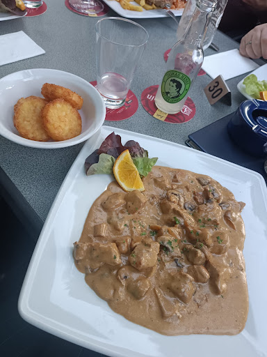 Gestern sind wir im Split zum Mittagstisch gewesen. Wir sind sehr freundlich und zuvorkommend bedient worden. Wir saßen draußen und trotz des Verkehrs war es dort nicht laut. Der Mittagstisch umfasst eine kleine Vorsuppe, einen kleinen Salat, das Hauptgericht und einen kleinen Nachtisch. Die Brühe war unserer Ansicht nach nicht selbst gekocht, also eventuell eine Pulverbrühe - war geschmacklich aber absolut in Ordnung. Also Einlage gab es etwas Hühnerfleisch, Nudeln, Erbsen und Möhren. Absolut in Ordnung. Der Beilagensalat war etwas Kraut, Eisbergsalat, Tomate und Gurke. Absolut ausreichend. Krautsalat geschmacklich so, wie ein Krautsalat sein soll. Die Hauptgerichte waren auf dem Teller nicht zu viel. Ich hatte die Leber. Noch leicht rosa innen, außen gut gegrillt und super zart. Pommes knusprig. Meine Mitesser hatten Pute mit Reis und. Champignons - die besten, die sie je gegessen hat. Pute gut gegrillt und gewürzt. Des Weiteren gab es noch Filet(?) mit Spiegelei und Bratkartoffeln. Auch hier war die pOrtion nicht zu groß und hat gut gereicht - mit dem drumherum, um ordentlich satt zu werden. Also Dessert ist ein Schälchen Vanillepudding mit Sprühsahne gereicht worden. Geschmacklich nicht meins, aber ich bin insgesamt kein Fan von Vanillepudding. Preislich lagen wir bei 50€ inkl Trinkgeld für drei Gerichte und 5 Getränke. Wir beklagen uns nicht und kommen gerne wieder. ☺️ Diesmal um die...