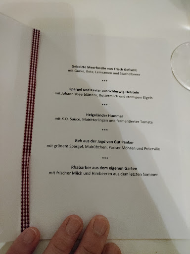 Ein echter Stern am Himmel von Schleswig-Holstein. Tolles kleines und sehr gemütliches Restaurant in traumhafter Umgebung auf dem Gut Panker. Das Essen war immer ein Genuß. Die lokalen Gerichte, die Zubereitung und die gelungene Präsentation, das immer nette, gut gelaunte und stets freundliche Personal runden das Erlebnis ab. Ausreichend PKW-Parkplätze, eigenes Hotel und die Nähe zur Ostsee machen es zu einem sehr schönen Aufenthalt. Auch die sehr tollen Sommerfeste mit weiteren lokalen Spitzen-Köchen sind immer wieder spannend. Und letztlich die leckeren Weine des Prinzen von Hessen runden es ab. Wir kommen immer gern...