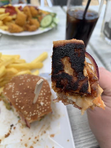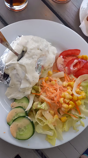 Read moreLeider ein Reinfall! Hatten uns auf ein gemütliches Mittagessen gefreut. Das Beste war die Aussicht. Der Salat hat schon bessere Tage erlebt. Ziemlich ekelig, so ein halb vergammelter Salat, der mit einem billigen Fertigdressig getarnt wird. Das Burgerbrötchen ordentlich angekokelt. Schade drum, der Rest vom Burger war okay. Die Currywurst war eine große Enttäuschung. Wenn man schon den Burger braten kann, wieso schmeißt man die Wurst in die Fritteuse? Oder lag die schon den halben Tag auf dem Grill?! Dazu gab es warmen Gewürzketchup. Meilenweit entfernt von einer Currysauce. Der Service sehr kurz angebunden. Zu uns nicht sonderlich unfreundlich, zu folgenden Gästen aber schon richtig frech. Einfache Nachfragen werden unfreundlich abgeschmettert und mit frechen Bemerkungen kommentiert. Wir sind noch einige Zeit vor Ort, hier werden wir aber nicht mehr einkehren. Gut, dass es andere Möglichkeiten gibt. Die 2 Sterne gibt es für die schöne Aussicht...