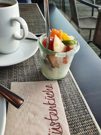 Das Bufett war insgesamt weniger als 08/15. Es gab sehr wenig Auswahl an frischem Obst (nur Melone), keine Säfte, kein Gemüse! Brötchen und Croissant erinnerten an billige Aufback-Ware vom Discounter. Das Hauptproblem war allerdings der Personalmangel! Für das gesamte oberste Stockwerk war lediglich EINE völlig überforderte, offensichtlich nicht qualifizierte Servicekraft zuständig. Benutzes Geschirr wurde nicht abgeräumt und stapelte sich auf den Tischen. Der zweite Gang zum Bufett (ca. 10.15 Uhr) war dann einfach nur ernüchternd: Es war NICHTS mehr da! Leere Brötchenkörbe, nur noch viel zu trockenes Brot. Kein Rührei, keine Pfannkuchen, keine Salate! Das bisschen Obst, das angeboten wurde, wurde auch nicht nachgefüllt. Ein absolutes No-Go Erst viel zu spät kam dann ein junger Mann aus der Küche "zur Hilfe"... Es ist völlig verständlich, wenn das eine oder andere Produkt einmal "aus" ist und erst nachgefüllt werden muss... Solch ein Ausmaß ist allerdings nicht hinnehmbar! Organisatorisch eine glatte 6!
