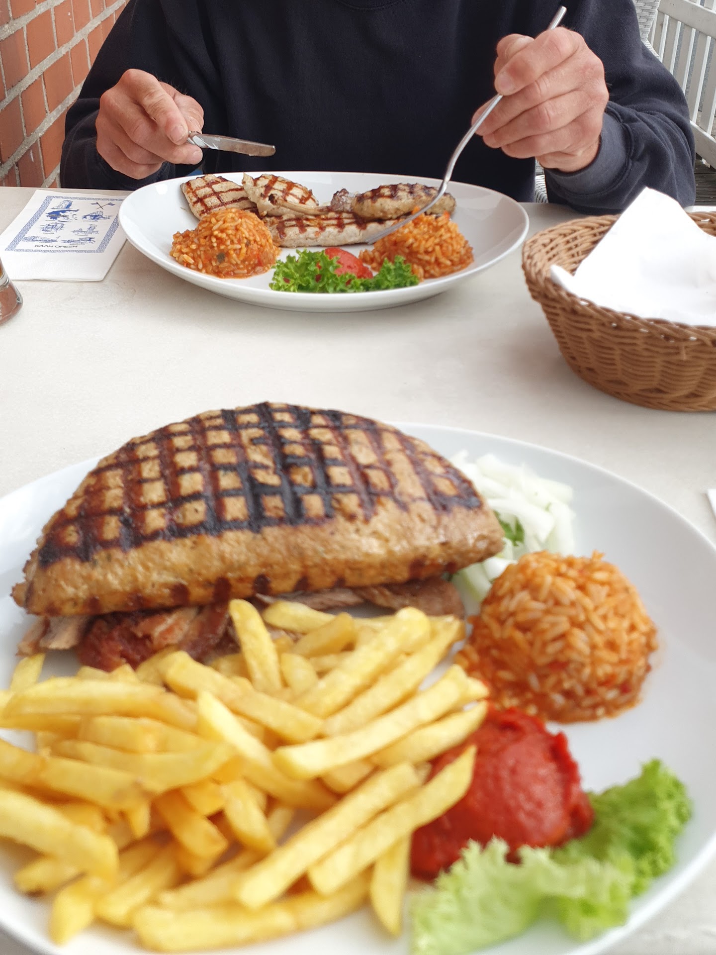 Die zwei Sterne gibt es nur für Qualität des Essens... Seit 10 Jahren bestellt meine Mutter bei Euch Essen für ihren Geburtstag. Nach Inhaberwechsel kann ich leider nur eine katastrophale Bewertung abgeben. Zum 7.7.2019 wurden 16 Essen bestellt (Gyros, Suflaki, Bifteki, Reis, Salat, Zaziki, Brot). Es wurde geraten, anstatt Pommes Frites lieber Rosmarinkartoffeln zu bestellen. Macht Sinn, wurde daher auch so bestellt. Ich habe verkehrsbedingt leider erst gegen 16:50 bei Euch das Essen abholen können. Auf mein freundliches “Hallo, ich möchte das Essen für Stephan abholen” wurde ich mit einem sehr unfreundlichen “Das war für 16:30 bestellt. Da steht alles!” begrüßt. Vor Eurer Tür stand ein Mitarbeiter und rauchte gelassen eine Zigarette. Im Restaurant war noch nicht wirklich Betrieb. Dennoch kam niemand auf den Gedanken, mir eventuell beim Tragen der Chafing-Dish-Behälter zu helfen, oder wenigstens mal die Tür aufzuhalten. Ich durfte also zigmal rein und raus und irgendwie mit dem Ellenbogen die Ausgangstür öffnen. Bei meiner Mutter angekommen stellten wir fest, dass anstatt der bestellten Rosmarinkartoffeln nun doch Pommes geliefert waren. Diese waren natürlich nach über 20 Minuten in der Konsistenz eher bei Gummi angelangt. Aber Ok, Ofen angeheizt und die Dinger wieder halbwegs aufgebacken. Zaziki und Brot fehlten komplett. Das Essen selbst war – wie gewohnt – lecker und von guter Qualität. Am 10.7. hat meine Mutter gegen 11:30 die ausgewaschenen Behälter zu Euch zurückgebracht und wollte das Problem mit den Kartoffeln und dem Tzatziki klären. Der einzig anwesende Mitarbeiter sagte nur “Ich kein Deutsch, Moment” und verschwand in der Küche. Auch bei der Rückgabe der Behälter gab es natürlich keine Hilfe, wozu auch, soll der “Gast” doch schleppen. Nach mehreren Minuten Wartezeit und lautem “HALLLOOOO!” rufen ohne Reaktion, ist sie dann gegangen. Liebe Leute. Wenn jemand für über 200 EUR Essen bestellt, dann erwarte ich bei Abholung auch etwas Freundlichkeit und vielleicht jemanden, der auch mal etwas hilft. Stattdessen wurde ich angeschaut, wie das letzte Ungeziefer. Wenn dann auch noch ein wesentlicher Teil der Bestellung schiefläuft, aber niemand ansprechbar ist – DAS GEHT GAR NICHT. Die Qualität des Essens war – wie gewohnt – absolut Ok. Aber diese Behandlung sowohl mir, wie auch meiner Mutter gegenüber, ist das Gegenteil von “Gastfreundschaft”. Sorry, aber wir sind extem enttaeuscht mit Euch. Das war dermaßen über alle Grenzen, da gibt es genug Alternativen. Mich, meine Freunde und Verwandten seht...