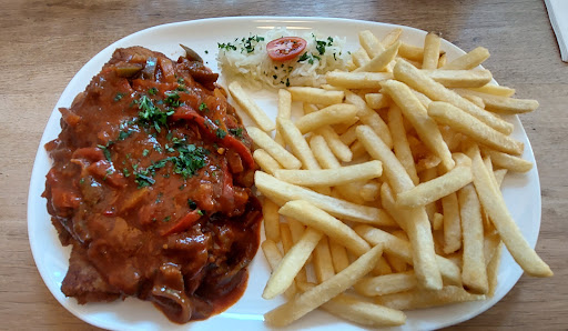 Den Stern gibt es fĂŒr das Essen, Wiener Schnitzel mit Pommes, das war wirklich perfekt. Der Service ist aber ein reines Chaos. Einfachste Regeln im Umgang mit GĂ€sten, Tisch decken und das Bedienen, sind nicht möglich.