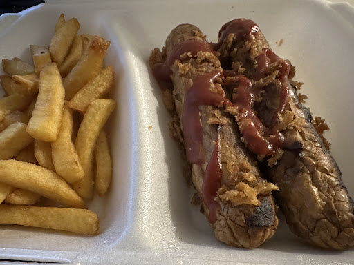 Das „Dönerfleisch überbacken“ war ein Blechbehälter mit Dönerfleisch und halbrohen Zwiebeln, welche in einer undefinierbaren roten Fettplörre schwammen. Das einzigste was halbwegs schmeckte, war der Käse obendrauf. Der Rest war ungenießbar.