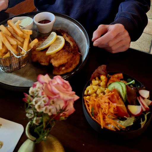 Read moreNice atmosphere - Rhine up the street for a nice walk. Food was great - huge portions for German restaurant and great prices. We had salad - huge and delicious , Hawaii toast - very cheesy and Schnitzel - 2 Sorten - both good ! We...