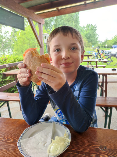Und als wir uns entschlossen hatten, wieder loszufahren, durften wir auch noch einem weiteren Pärchen lauschen, deren Schnitzel nach Fisch geschmeckt hatte.