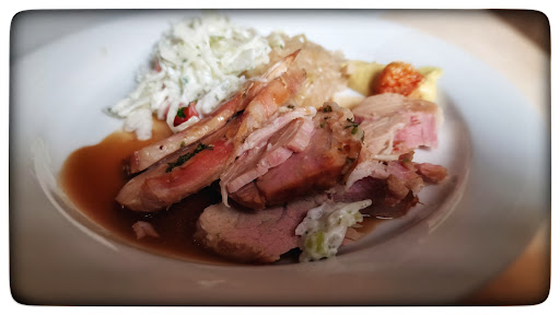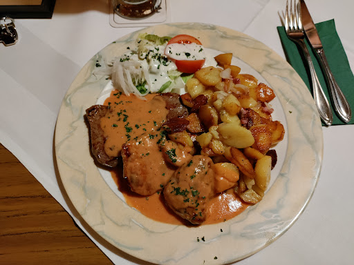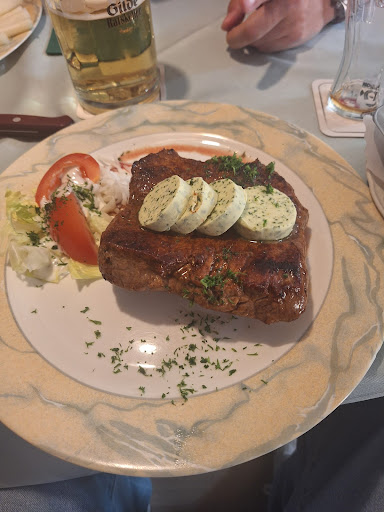 The restaurant is often used for celebrations. We were there on Sunday, the parking lot was almost full. Got a place in the small room in which the bar is located. There are only 3 or 4 tables, very cosy. There are two menus, one with steaks and a second with the rest of the dishes, very clear. The food is handcrafted very well. I had a steak with fried potatoes - both on point, no complaints, plus a dark beer from Franconia. The service is great, nice and very attentive, I guess the owner does the service himself while the wife cooks, at least that's what I heard from someone. So if you want to eat a steak, you've come to the right place - but my companions were also satisfied, so I think the other dishes were...