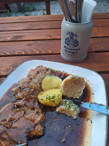 Read moreEin traditioneller , historischer Brauereigasthof im Herzen der malerischen Altstadt von Landau an der unteren Isar . Ein ruhiger urigen Biergarten im Schatten eines riesigen Ahornbaums lädt genau so zum Verweilen und zur Einkehr ein wie die Terrasse zur Altstadt hin . Ein Haus mit Charme das von einem Wirt mit dem nötigen Herzblut geführt wird der sein Handwerk einfach versteht . Hier kocht der Chef noch selbst und das schmeckt man . Egal ob ein frönkisches Schäufele frisch aus dem Rohr oder ein saftiger Krustenschweinsbraten mit gemischte Knödel in einer einzigartigen Natur Jus die mit reichlich Dunkelbier erst ihren vollen Geschmack bekommt, einfach alles vorzüglich . Flotte zuvorkommende Bedienungen bringen in Windeseile und mit einem Lächeln eine frische kühle Halbe "Kriegerbräu" . Auch an Kinder ist gedacht mit extra Kindergerichten . Vegetarier sollten sich an die hausgemachten Käsespätzle halten , ein Geheimtip . Serviert mit röschen Zwiebeln, ein Gedicht . Selbst Freunde fernöstlicher Küche kommen bei Kumba , so heißt der engagierte Küchenchef und Wirt voll und ganz auf ihre Kosten . Als gebürtiger Nepalese der seit vielen Jahren bayerische Gastlichkeit lebt und liebt zaubert er in seiner Küche ein 1 A Curry mit Hähnchen oder auch nur mit knackigem Marktgemüse und duftendem Basmati Reis . Wir kommen immer wieder gerne hierher und empfehlen das Wirtshsus...