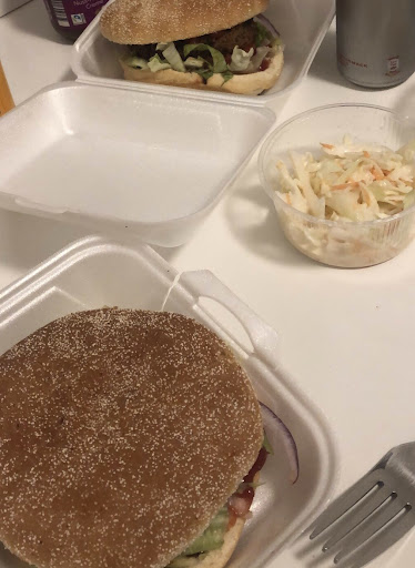 Keiner der Extrawünsche (keine Zwiebeln, keine Tomaten) wurde berücksichtigt. Da die Tomatenscheibe extrem dünn war habe ich sie vom Burger genommen und den dann gegessen. Abgesehen von der Tomate war der Burger okay (Einzelbewertung 3 Sterne). Die Süßkartoffelpommes waren etwas sehr weich, dafür würde ich 2-3 Sterne geben. Die Kartoffelecken waren schön heiß aber auch etwas zu weich (4 Sterne). Was gar nicht ging waren die zwei Burritos. Knorpeliges Fleisch, weich gekochter Salat, fettige Soße, ZWIEBELN (waren extra abbestellt!!). Die zwei Burritos sind nach kurzem probieren fast vollständig im Müll gelandet. Der Ekelfaktor war dann zu groß als dass sie noch hätten gegessen werden können…