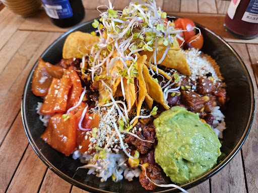 The cuisine is a bit of German/Asian fusion. Deliciously flavorful. I had a bowl and my husband had the burger.