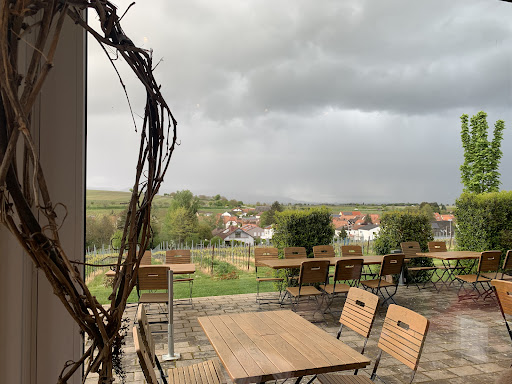 I reserved a table for my family which included members from the US and Switzerland. We came here for dinner to celebrate our last night together before everyone headed back home the next day. I couldn’t think of a more scenic beautiful and lovely restaurant and environment to spend our last evening together after a day of strolling downtown landau. Firstly, one cannot miss the spectacular and breathtaking views of German Pfalz wine country on the drive in and at the table. Every seat in the restaurant has an almost 360 view of the rows and rows of grape vines against lush green rolling hills and cerulean skies. The picturesque backdrop set the tone for one magical and beautiful evening together as we basked in the glorious scenery around us. The clean, modern and elegant design of the interior was also welcoming and refreshing and warm. We appreciated the careful details that went into the beautiful design and execution of the restaurant decor and seating. The wait staff and host were exceptionally professional and friendly and provided prompt, knowledgeable and friendly service throughout the meal. When the food arrived, everyone was inspired by how carefully crafted each dish was. Not only did they serve generous portions, but the food was skillfully prepared and plated and was a feast for the eyes. My husband and I ordered the vegan currywurst and the Linsen Salat and were very pleased and pleasantly surprised at how flavorful and close to real curry wurst that the vegan version was. Other guests at our table were similarly impressed and happy with their meals. The flavor, plating and portions were all on point and many dishes reflected the regional cuisine. My sister was quite happy with her Pfaldish dish of white asparagus and salmon. Apparently white asparagus is in season right now and restaurants like this which focus on fresh seasonally available ingredients are offering delicious dishes highlighting this fan favorite vegetable. The restaurant was also quite thoughtful in its amenities and has a bathroom specifically for mothers of infants with a large changing station. (Something I appreciated using for my little one!) I have to say the entire experience from booking the table to finishing our meal was fantastic. The only thing to be aware of is they do not take credit cards so be prepared to use cash or your debit card to pay. All in all, an excellent first experience in Germany’s wine country! Highly recommend to others for the breathtaking views, stellar service, exceptional food and warm ambience. Hope to come back again next time and try a...