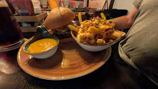 Read moreWe discovered this on Google and decided to give it a try. It was hard to locate at first because it's through an arch with other places in the same location. We were asked if we had a reservation and we did not. (Highly recommend to make one) We really thought about getting that triple burger but it was costly so we went with the western burger and the Mexican burger. Your fries or onion rings are extra but well worth it! My western burger was Devine!!! The onion rings were hot and fresh. They spoke English and were very dog friendly!! I highly recommend you going to eat here. Xoxo...