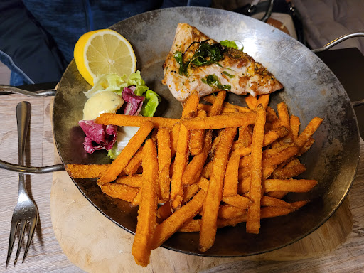 Wir waren 3 Erwachsenen und hatten 2 kleine Kinder dabei. Wir sind kurz nach 18 Uhr angekommen, waren die einzigen Gäste, wurden umgehend bedient und unsere Getränke wurden gebracht. Dabei haben wir direkt die Bestellung aufgegeben, 3 Hauptgerichte (wobei man die Beilagen extra kauft), eine Suppe und 2 Portionen Pommes. Ich wurde gefragt, ob ich die Suppe als Vorspeise haben möchte und ob die Kinder ihre Pommes gleich bekommen sollen oder mit den Hauptgerichten. Nach 45 Minuten!!! erreichten unseren Tisch latschige Pommes, die innen nicht durch und außen nicht knusprig waren. Meine Suppe war sehr lecker.