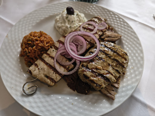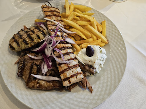 Wir waren gestern zum ersten Mal auf Empfehlung mit 6 Leuten beim Essen. Erster Eindruck war sehr positiv.Freundlicher Empfang, schönes Lokal mit großem Biergarten.Die Bestellung verlief normal. Die Peperoni vom Grill und die Knoblauchbrote waren kalt und ohne pepp. Der Beilagen Salat war 4 Zwiebelringe 1/4 Stück Tomate und der Rest war Blattsalat mit Einheitsdressing. Könnte schon etwas vielfältiger sein und das Dressing auswählbar. Bei der Fischplatte war die Garnele der Lachs und Dorade trocken und zu lange gebraten, dazu fast kalt serviert. Beim Thessaloniki Teller war der Reis,Fleischspieß und Gyros kalt. Das Gyros war dazu total trocken und wenig gewürzt und zäh. Die Nachspeise war OK. Am Tisch stand kein Salz und Pfeffer bzw. Dressing zum nachwürzen. Beim Besteck fehlte 1 Messer. Die Bestuhlung draußen ist schön aber auf die Dauer sehr hart zum sitzen. Polster wurden uns keine angeboten obwohl es anscheinend welche gibt. Die Portionen waren reichlich jedoch war alles kalt und trocken. Vom Preis etwas gehoben jedoch rechtfertigt es keinesfalls die abgegeben Speisen. In der Summe sind wir endtäuscht. Die Bewerbung von 4,9 finde ich nicht gerechtfertigt. Dies schildert unsere Eindrücke von diesem Tag und sollte keinesfalls als repräsentativ gelten. Wenn das Essen warm serviert und nicht tot gebraten wird, er Beilagen Salat aufgepeppt sowie das Dressing wählbar ist ,die Gewürze am Tisch stehen ,sieht das bestimmt anders aus. Dem Service wäre kein Abbruch getan wenn sie die Sitzpolster auf die Stühle legen bevor sich der Gast hinsetzt. Wir gehen oft und gerne griechisch essen.es wäre wünschenswert wenn der Gast sich wohlfühlt und nicht alles...