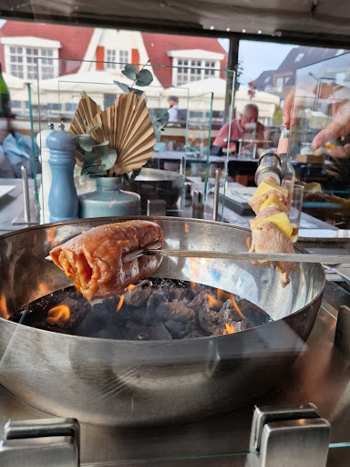 Das iismeer Sylt ist ein unmittelbar in der Nähe des Wennigstedter Strand und der Strandpromendade gelegenes Grill-Restaurant. Die Hauptidee ist die, dass man am Tisch an einem Gasgrill sein bestelltes Fleisch oder Fleischvariation (Hauptgang) selbst über der offenen Flamme zubereiten kann. Die Frage nach "blutig" bis "well done" gilt es dann selbst zu beantworten. Nett war, dass die Servicekraft dem Gast noch ein paar Tipps hinsichtlich der Verteilung über der Flamme oder der Vorgehensweise beim Fleischspieß (vordere Stücke zuerst, herunter nehmen zum Essen, die hinteren nachschieben und wieder über den Grill platzieren) gegeben hat. Das Ambiente im Wintergarten ist wegen der Nähe zum Strand und durch die "Grill am Platz" Atmosphäre ungezwungen und entspannend. Wegen der offensichtlichen Inanspruchnahme ist eine Tischreservierung insbesondere in den Abendstunden zu empfehlen. Bei uns hat alles problemlos geklappt, wegen der begrenzten Platzzahl gibt es überwiegend nur größere Tische, so dass wir (zwei Erwachsene) neben einer anderen Familie platziert wurden. Dies war nicht schlimm und folgt eben den Gegebenheiten des Restaurants. Die Speisekarte ist vielfältig und sollte mit Eis, Cocktails, Vorspeisen und natürlich Fleischhauptgerichten eine breite Auswahl für jeden bieten. Wir waren zu zweit und haben einen Eistee Pirsich, eine Flasche Mineralwasser mit Kohlensäure, ein Knoblauchbrot, einen Hähnchenspieß, einen Kalbsrückenspieß, einen Gurkensalat, einen Blattspinat-Birne Salat und 5 x die Ofenkartoffel (die Beilagen waren sehr klein, aber sehr schmackhaft) genießen dürfen. Hierfür haben wir 109,50 Euro bezahlt. Auch für Sylt liegt das eher im überdurchschnittlichen Bereich. Die Speisen waren aus unserer Sicht von hoher Qualität und haben sehr gut geschmeckt. Die Preispolitik ist ggf. für Familien nicht wirklich erschwinglich, da die Hauptgerichte (Hähnchenspieß 35 Euro, Kalbsrückenspieß 39 Euro) nicht von jeder Einkommensgruppe getragen werden können. Dafür waren die (eher klein portionierten) Beilagen mit 1,50 Euro bepreist und sehr schmackhaft. Auf den Bildern könnt Ihr sehen, wie die Größe der Portionen zu bewerten ist. Dies ist natürlich für jeden unterschiedlich, weshalb wir das nur informativ heraustellen. Für uns war das Essen mit einer Höchstbewertung zu versehen. Zum Service ist zu sagen, dass wir sehr nett behandelt und beraten wurden. Lediglich beim Servieren und bei der Nachbestellung der Beilagen haben sich dann kleinere Unachtsamkeiten eingeschlichen, die wir deshalb mit einem Abzug von einem Stern versehen haben. So wurde z.B. beim Eingießen des Mineralwassers (immerhin 9,00 Euro die Flasche) großzügig über die Gläser geschwenkt und auch Wasser auf dem Tisch verteilt. Obwohl gesehen, hat der Kellner keine Anstalten gemacht, die Tropfen abzuwischen oder eine Serviette bereitzustellen. Des Weiteren hatte er kurzzeitig unsere Nachbestellung vergessen, wofür er sich aber entschuldigte und die Ofenkartoffeln kurzfristig gebracht hat. Beim Ambiente ist anzumerken, dass die Toiletten gemeinsam mit dem angrenzenden Kulturcenter K³ genutzt werden. Diese sind aber sehr modern, sehr sauber und waren bis auf die fehlenden Tücher für die Hände nach dem Händewaschen absolut in Ordnung. Für eine doch hochpreisige Gastronomie ist ein kontinuierlicher Blick darauf doch angebracht und dürfte erwartet werden. Auch wenn das Kritik auf hohem Niveau ist, hat es daher beim Ambiente nicht für die volle 5 Sterne Bewertung gereicht. Das iismeer ist als Restaurant sehr zu empfehlen, wobei größere Familien die Preise vorher für sich bewerten sollten. Einmal ausgewählt, werdet ihr einen schönen Abend mit gutem Essen und einer lockeren und strandnahen Atmosphäre genießen können. Darauf kommt es an, lasst die Seele baumeln und probiert es gerne aus. Ihr werdet nicht...