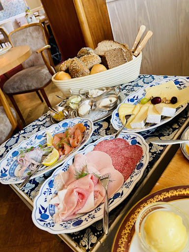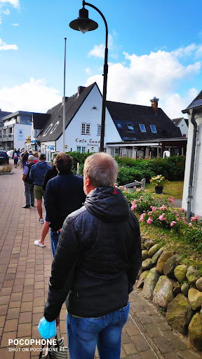 Read moreDie Konditorei mit angeschlossenem Café befindet sich im Herzen von Hörnum. Schon ein Blick von außen in den Laden, aber auch in die Backstube (wo hat man das schon?) macht Lust auf einen süßen Zwischenstopp. Die Auswahl bei den Torten ist reichlich und fällt schwer. Unsere Wahl fiel auf die Lübecker Nusstorte - frisch, lecker, empfehlenswert (beim nächsten Mal wird's die Friesentorte, versprochen)! Dazu ein Becher heiße Schokolade (und was für ein Becher!) und ein Friesentee (wie es sich gehört, mit Kandis und Sahne). Das Café hat uns wegen seines Charmes und seiner Gemütlichkeit sehr gut gefallen. Es ist eine Freude, wenn noch ein wenig der "guten alten Zeit" erhalten ist. So auch die herrlichen Möbel aus den 60igern (oder vielleicht noch älter? ), die aber keinesfalls angestaubt wirken. Neu und dezent gepolstert sind sie heute wieder voll im Trend. Das Personal war sehr freundlich. Die Corona-Einschränkungen machen gerade vieles sowohl bei den Gästen als auch bei den Gastgebern etwas aufwändiger, aber auch das wurde bestens gemeistert: Abstände sind großzügig bemessen, Wegeführung ist durchdacht. Leider entfällt damit der Gang zur Kuchentheke, so dass man entweder vorher einen Blick durchs Fenster der Konditorei wirft oder sich die Möglichkeiten durch die Bedienung aufzählen lässt. Zum Außenbereich: Sehr gepflegt, teilweise mit Strandkörben auf einer kleinen Wiese, teilweise überdacht mit Heizstrahler. Eine witzige Idee vor dem Cafe: Sitzmöbel aus Holz mit einem Tisch...