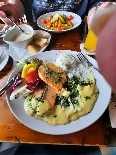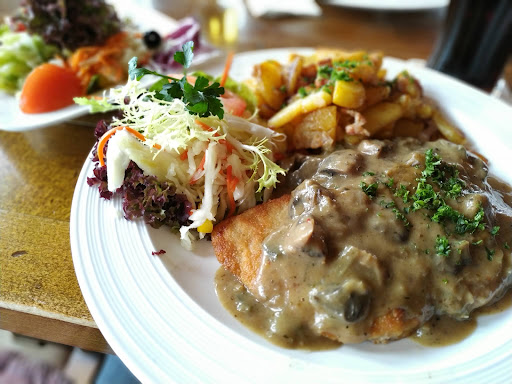 Die Gerichte sind allesamt frisch zubereitet, in der Auswahl gut- bürgerlich, weit, aber nicht zu weit gefächert, Convenience- Produkte muss man schon aktiv suchen, die Portionsgrößen sind üppig, das Preisniveau in Relation und für ein Urlaubs- Ausflugsziel absolut angemessen. Eine kleine, subjektive Empfehlung am Rande sind die Salate mit einem wahlweise zu bestellenden, sehr schmackhaften Avocado- Ingwer- Dressing.