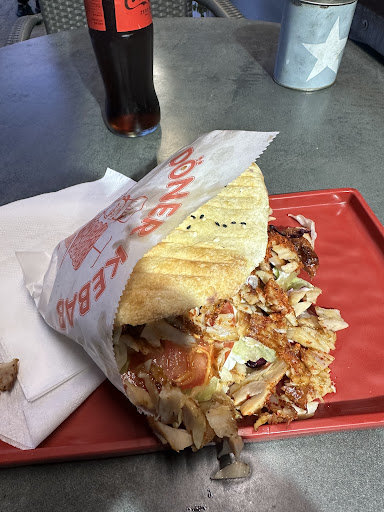 Read moreAuch hier sehr große Döner, habe meinen nicht geschafft, geschmacklich war etwas besser als nebenan, aber wahrscheinlich derselbe Lieferant Putenspieß. Saucen geschmacklich gut, aber mit der Haut oben drauf wahrscheinlich sehr sehr früh in den Morgenstunden desselben Tages... Tee kostet extra und mit 1,50€ auch gar nicht so wenig. Personal tlw. schwache Sprachkenntnisse und etwas reserviert.