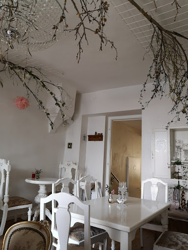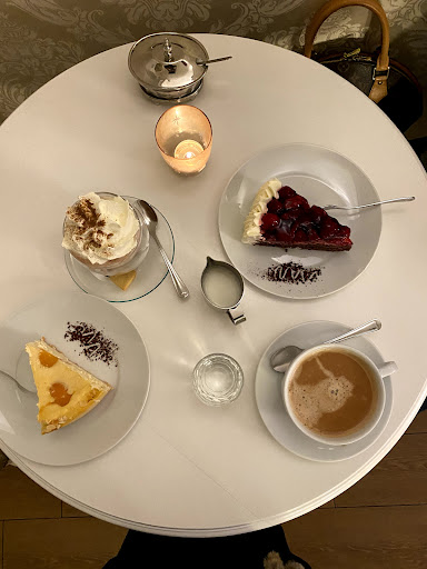 Da gab es dann bereits eine Erhöhung zwischen der Speisekarte online und der Speisekarte, die in der Google-Suche zu finden war. Vor Ort war dann leider alles noch ein weiteres Mal teurer geworden. Der Kaffee mit Sahne und Sirup hat ganz gut geschmeckt, war allerdings nichts Besonderes und damit seinen Preis nicht ganz wert. Das Frühstück war insgesamt ok, allerdings für das Gebotene recht überteuert. Die frischen Kuchen aus der Auslage sahen allesamt gut aus. Ich habe ein Stück bestellt und habe leider (in meinem Beisein) das letzte Stück vom alten Kuchen bekommen, obwohl der Neue schon daneben stand. Der frische hätte sicher etwas besser geschmeckt. Schade. Während unseres Aufenthalts war die Bedienung vielfach damit beschäftigt am Handy Nachrichten zu schreiben und zu empfangen, was man deutlich hören konnte. Dadurch hat sie uns leider etwas vernachlässigt. Was mich auch etwas irritiert hat ist, dass an vielen der Dekogegenstände Preisschilder hingen. Ist wohl Teil des Konzepts und mag vorteilhaft sein, aber mir wirkte das alles etwas zu kommerziell.