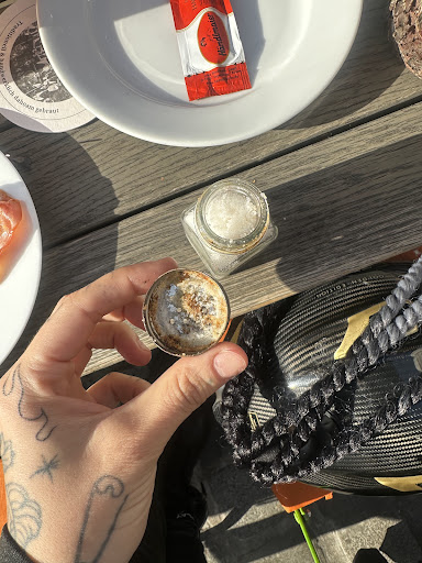 ALLES IN ALLEM hatte ich ein Gefühl nach unserem Besuch: es wird versucht mit möglichst wenig ausgeliefertem Produkt möglichst viel Profit zu schlagen, was vor allem beim Frühstücksbusiness möglich ist, da man dort ja viele kleine Kleinigkeiten noch auf den Teller tun kann, damit das Produkt in der Kartenbeschreibung noch mehr Zeilen füllt, somit nach viel zu Essen klingt und man demnach den beachtlichen Preis ja als gerechtfertigt ansehen könnte. War er leider meiner Meinung nach aber bei Weitem nicht, da ein Frühstück im Preis von 16,90€ mich nicht satt gemacht hat.