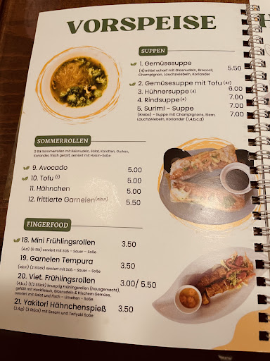 Into the shop, the atmosphere is quite different from other similar places. It feels quite warm and like home. The ladies in the shop are super friendly. This is, for me, a really great start. We had Sommerrollen as starter. This is a great start because the tofu inside is freshly fried from silk tofu (normally, it is only made from ... ,from my taste..., stinky tofu...). Additionally, with the sauce that comes with the dish, it is really amazing. The sauce tastes like Pekingente Soße. I really like this taste. For main, we order vegan PHO with tofu. Similar tofu inside the Sommerrollen is used with a really cheering quantity (see photo). For me, the taste is great. However, I am not sure whether my experience can be considered as a proper PHO experience as normally PHO is not vegan. I am quite happy I can get a vegan PHO with a lot of tofu. If anyone is also a tofu fan, this would also be a great choice for you. Anyway, I can really...