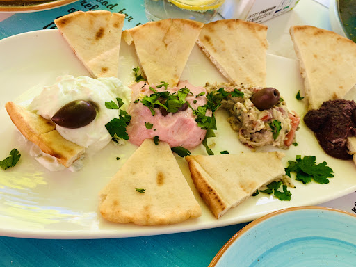 HauptgĂ€nge: Hauptgang ging auch sehr flott! Kalte Vorspeisenplatten waren gut. Das Pitabrot wirkte auf mich fertig gekauft, erwĂ€rmt und mit Ăl getrĂ€nkt und Knoblauch bestreut. Leider geschmacklich aber nicht zufriedenstellend, das Brot an sich sehr geschmacksneutral, selbst den Knoblauch hat man kaum geschmeckt obwohl ausreichend vorhanden.