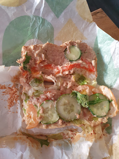 Read moreUNMÖGLICH! Subway Sandwiches sind für mich oftmals die gesündere Variante zu anderen Fastfoodketten, aber der Laden am Bahnhof schafft es immer wieder mich zu enttäuschen. Als ich rein kam, waren ein junger und ein älterer Mitarbeiter da. Der Jüngere hat mich freundlich bedient, bis dann der Ältere dazu kam. Ich hatte extra Fleisch bestellt, da wird man dann vom Älteren angemault ob ich schon extra zahle. Dann macht er weiter, nimmt mein Sub 14 Sekunden vor Ende aus dem Ofen. Ich denk mir noch, er wird schon wissen was er tut. Weiter ging s mit Salat und Soße wobei die Nachfragen extrem unfreundlich waren. Naja dann eben gezahlt und die Tüte hingeknallt bekommen. Zu Hause dann die Ernüchterung: das Sandwich war trotz Thermobox eiskalt, das Fleisch quasi von der Hitze unberührt und das Brot weich. Unmöglich echt! Dabei war nicht mal was los im Laden. Ich werd dem Ganzen keine Chance mehr geben! Das war heute einfach...