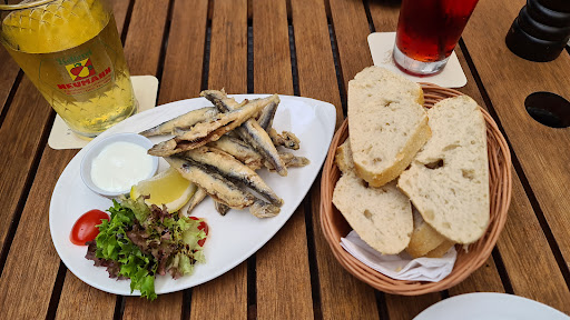 Read moreDer Mittagstisch Plesjavica war eigentlich eine Frikadelle mit 3 Stückchen Feta, der Reis war mir gehackten Dosentomaten und Erbsen..Leider geschmacksneutral. Der Salat war mit Fertigsauce und der Palatschinken war ein Fertigprodukt. Nicht knusprig. Der Expresso dazu kann 10 Minuten früher. Die Getränke sind sehr teuer und es gibt keine grosse Wasserflaschen. 2 kleine Getraenke, 2 Mittagstisch, 2 Expresso für 38 Euro. War es nicht wert. Man kann draußen sitzen und die Bedienung war freundlich. Aber das brauchen wir...