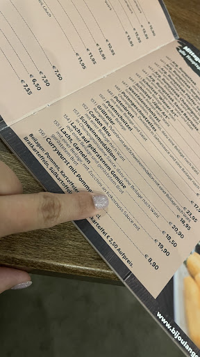 Auch als vegan lebender Menschen kann sich ein Besuch im Bijou lohnen. Auf der Karte findet man zwar leider keinen Vermerk, ob das Essen nun vegan ist oder nicht (vegetarisch wird ausgewiesen), aber die nette Bedienung war super hilfsbereit und hat einfach in der Küche nachgefragt. Die Pasta Italiano war super lecker, der Milchkaffee in der Hafermilch Variante ebenso. Auf dem Speiseplan der Seite „Burger 100% Rinderpatties“ findet man dann immerhin doch auch einen Veggieburger (vermutlich aufgrund der Kräutersauce aber nicht vegan). Warum die bestellbaren Beilagen „Pommes“ und „Grüne Bohnen“ nicht mal als vegetarisch ausgewiesen sind muss man nicht direkt verstehen. Ganz viele der angebotenen Gerichte wären genauso lecker auch vegan anbietbar. Für die Karte die ruhig überarbeitet werden könnte ziehe ich einen Punkt ab, für die ganzen Gerichte die (aus Gedankenlosigkeit?) nicht vegan angeboten werden, obwohl dies problemlos möglich wäre kassiere ich nochmal einen Punkt. Dafür das man nicht schief angeschaut wird, wenn man nach veganem Essen fragt (was keinesfalls selbstverständlich ist), und weil ich ein positiv denkender Mensch bin (ihr kriegt das in Zukunft noch besser hin – ganz sicher!) ziehe ich in Summe dann eben auch doch nur einen Punkt ab. An die Veganer die Empfehlung: Hingehen & einfach freundlich nachfragen. Ihr werdet...
