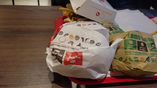 Read moreEnttäuschend. Schon beim Betreten des Restaurants hätte ich um drehen sollen. Der Boden schmierig und klebrig. Die Servicekraft hinter dem Tresen hatte eine Laune, als würde ihr die Sonne aus dem A.... scheinen. Gut das ich am Terminal bestellt habe. Bestellnummer erhalten und schonmal einen Tisch gesucht. Dies gestaltete sich recht schwierig. Nicht das die Tische besetzt waren, es war halt schwierig einen sauberen Tisch zu finden. Beim Blick der Angestellten lief mir ein kalter Schauer den Rücken runter und ich hatte das gefühl ich müsse jetzt eigentlich tot umfallen als ich mich erdreistete zu fragen ob sie mir einen Tisch abwischen könne. Ich bin kein Hypochonder aber auch ohne Corona ein absolutes No-go. Das Essen war schnell zubereitet und heiß. Nach langer Zeit der Abstinenz hat es mich dennoch nicht wirklich vom Hocker gehauen. Ganze 2 Servietten gab es zu einem vollen Tablett für drei Personen. Auch andere Gäste mussten immer wieder zum Tresen weil sie etwas zusätzlich benötigen, Ersatztrinkhalm, Servietten etc. was die Bedienung nicht wirklich amüsierte. Alles in Allem Service eine dicke 4-, Essen eine gute 3. Das kann der Mitbewerber nebenan besser. Der nächste Besuch wird bei mir wohl wieder etwas...