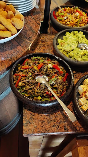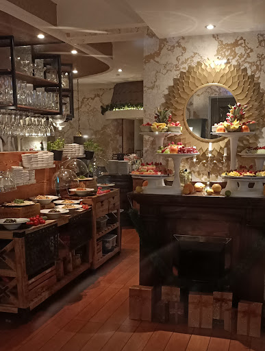 Read moreWar hier einmal zum Table Quiz mit Buffet: Das Essen war schön angerichtet, geschmacklich durchschnittlich lecker und die Auswahl des Tapas-Buffets war ebenfalls okay. Hier wird nichts falsch gemacht, aber es ist auch nichts besonderes. Das Buffet war allerdings sehr unkoordiniert. Nach der Eröffnung bildete sich direkt eine sehr lange Schlange, die auch nach einer halben Stunde noch kein bisschen kleiner wurde. Da wir keine Lust hatten uns dort ewig anzustellen, warteten wir erstmal und fühlten uns erst genötigt uns ebenfalls anzustellen, als die Personen am Nachbartisch (offenbar weniger abgeschreckt vom Anstehen) sich ein zweites Mal anstellten. Da es ja wegen dem Table Quiz ohnehin einen Moderator gibt, würde hier vielleicht zumindest für den ersten Gang zum Buffet eine tischweise Reihenfolge Sinn machen, vergleichbar wie es ja öfter auch z.B. bei Hochzeiten gehandhabt wird. Grundsätzlich wäre das auch weniger problematisch, wenn nicht einzelne Teile des Buffets (z.B. Datteln im Speckmantel) direkt leer gewesen waren und nicht mehr aufgefüllt wurden. Anderes hingegen war auch ganz am Ende noch in übergroßen Mengen vorhanden, da stimmt die Kalkulation nicht ganz.