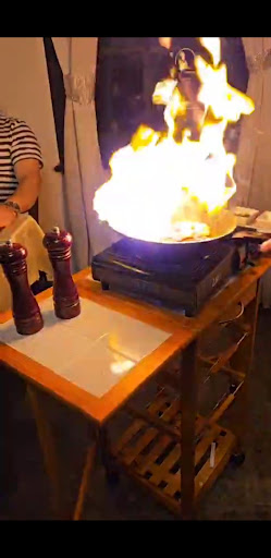 A special note — it’s amazing to watch the chef cook in front of everyone, with flames rising...