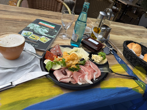Read moreEs war unsauber. Es war nicht viel los, aber die Tische wurden nicht abgewischt, obwohl drei Personen des Servicepersonals im Gastraum unterwegs waren. Auf der Karte waren Flecken, vermutlich vertrockneter Balsamicoessig auf einer Seite und Schuhabdrücken auf der anderen Seite. Der Service konnte sich nicht merken, dass die Pizza geschnitten werden soll. Der kleine Teller war dreckig und wurde auf meine Bitte umgetauscht. Das Besteck war auch nicht sauber. Gabel und Messer werden in eine Serviette eingewickelt, da sollte doch dem Personal auffallen, dass an der Gabel das Essen vom Vorgänger klebt. Die Pizza wurde schließlich mit der Hand gegessen, war auch nicht so toll. Bei dem Käse handelte es sich um irgendeinen sehr salzigen billigen Käse. Preisleistungsverhältnis stimmt in diesem Laden nicht. Ich bin...