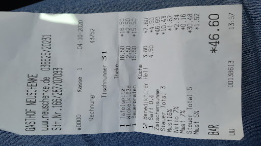 Read moreBesuch in der Gaststätte Gasthof Neue Schenke war trotz einer längeren Wartezeit ein durchweg positives Erlebnis. Das Ambiente der Gaststätte besticht sofort, insbesondere der großzügige Biergarten lädt zum Verweilen ein. Hier kann man perfekt einen lauen Sommerabend genießen. Die Speisekarte bietet eine Vielfalt an bürgerlichen Gerichten, die nicht nur sorgfältig zubereitet und sehr schmackhaft sind, sondern auch in sehr reichhaltigen Portionen serviert werden. Hier geht man sicher nicht hungrig nach Hause!