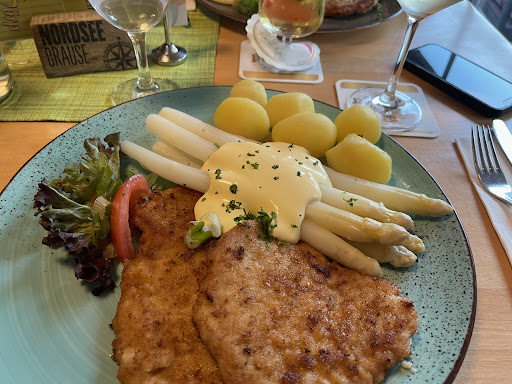 Dieses Restaurant besticht durch das anonyme Billig-Ambiente eines Altenheim-Speisesaals, was hervorragend mit dem Durchschnittsalter des überwiegend geriatrischen Publikums harmoniert. Die mit der Raffinesse einer Möbelhauskantine gestalteten Speisekarte offeriert die üblichen verdächtigen Fleisch- und Fischgerichte mit öden Beilagen wie Pommes oder Pfannengemüse zu abenteuerlichen Preisen. Als Hauptgericht wählte ich eine Scholle, welche beim Versuch sie zu filetieren auseinander fiel und völlig geschmacksneutral war. Hab schon besseren Fisch von Iglo gegessen. Ertränkt wurden der Fisch und die faden, zerkochten Kartoffeln mit Billig-Hollandaise aus dem Tetrapack. Die für eine Autobahnraststätte angemessenen Schweinendchen meiner Begleitung wurde mit Tiefkühl Broccoli und ebensolchen Kroketten serviert, was für fast 30 Euro unverschämt ist. Die lieblos darüber drapierten Mandeln konnten den Gesamteindruck nicht mehr beeinflussen. Einen Stern gibt es für den freundlichen Kellner, der ja für den Fraß nichts kann. Fazit: Überteuert und qualitativ minderwertiges Restaurant. Schlechter habe ich auf Langeoog noch...