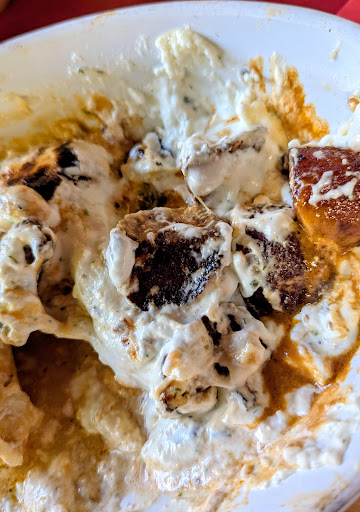 In diesem etwas abgelegenen Ort , gibts es ja so manch kuriose gestallten aber auch Gastronomische Einrichtungen wie diese. An diesem Ort erwartet sie so manches, ganz passable Gerichte, obwohl Griechisch/Indisch/Deutsch und Pizza für sich spricht , sind die Mahlzeiten die man hier zu sich nimmt nicht unbedingt schlecht. Meine Bestellung war angemessen und sauber serviert worden, geschmacklich 4/5 da gibt es auch nicht mehr zu sagen.