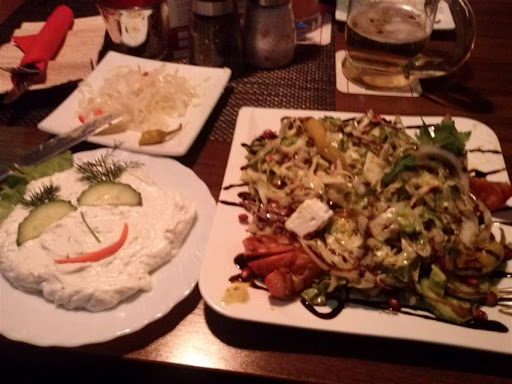 wie immer wenn Bilder in der Speisekarte sind habe ich den Kellner gefragt ob denn der Bauernsalat in etwa so kommt wie auf dem Foto in der Speisekarte. Er bestätigte dies und somit bestellte ich den Salat. Was ich bekommen habe war alles andere als das was man auf dem Foto sehen kann. Schade. Zudem kam er noch mit dem Krautsalat weil der IMMER bei den Gyros dabei ist. Prima