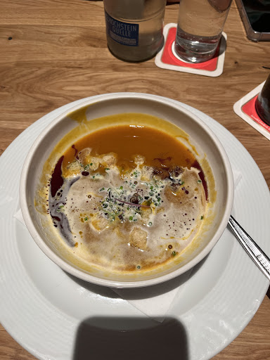Read moreIch war zum Weihnachtsessen mit Kolleginnen und Chef dort. Als wir ankamen und bei dem Service mitteilten, dass wir reserviert haben, wurde erst mal gesagt, dass für uns keine Reservierung besteht. Irgendwie wurde es aber dann doch geklärt und wir haben unseren Platz zugewiesen bekommen. Es war rappelvoll und seeeeehr laut. Wir hatten das Glück, dass wir recht weit hinten in einer kleinen Niesche saßen, die man quasi schließen konnte. Das hat es etwas abgedämpft, wir konnten uns unterhalten.