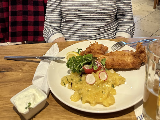 Getränke und Essen kamen relativ zügig und waren eigentlich sehr lecker, leider traten trotzdem ein paar Probleme auf. Kollegin hatte Haare in ihrem Käse-Spätzle, eine andere Kollegin wollte ein alkoholisches Getränk aber ohne Zitrone, das hatte sie auch sehr laut gesagt und es wurde dann trotzdem mit Zitrone gebracht. Bei einer weiteren Kollegin wurde Dessert bestellt, welches nicht kam. Als eine Kellnerin kam und die Kollegin nachgefragt hat, wo denn ihr Dessert bleibt, kam erst gestotter und dann "äähh, gibts nicht mehr, Küche ist geschlossen!" Später kam eine andere Kellnerin und hat sich entschuldigt, ob denn die andere Kellnerin nicht Bescheid gesagt hätte.