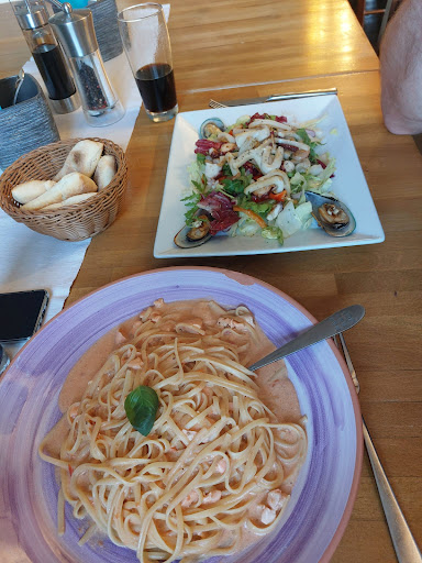 Read moreDas Essen war im großen und ganzen recht lecker, preislich auch in Ordnung. Der Service lässt aber sehr zu wünschen übrig. Unsere benutzen Gläser standen den gesamten Abend über auf dem Tisch, auch das Döschen mit Parmesan wurde nicht abgeräumt. Eine übrig gebliebene Pizza wurde nur nach dreimaligem nachfragen eingepackt. Es wurde noch eine weitere Pizza zum mitnehmen bestellt, nach ca. einer Stunde haben wir nachgefragt ob diese denn schon fertig ist, Bedienung meinte dann das sie fertig ist und in der Küche zum warm halten bleibt. An sich eine tolle Idee, aber es wäre schön gewesen wenn man diese Information von alleine von der Bedienung erhält. Wir hätten auch gerne nochmals Getränke bestellt, die Bedienung hat uns aber so strikt ignoriert und immer in eine andere Richtung geschaut, also hatten wir bis wir gegangen sind 45 Minuten lang nichts mehr zu trinken. Am Ende wurde beim bezahlen auch das Trinkgeld nicht richtig...